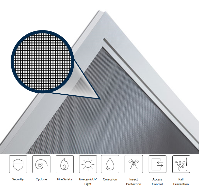 The ForceField stainless steel security screens come with the strongest attainable security screens mesh utilising a 316 stainless steel wire that is powder coated to further enhance the anti corrosion properties the grade of steel renders